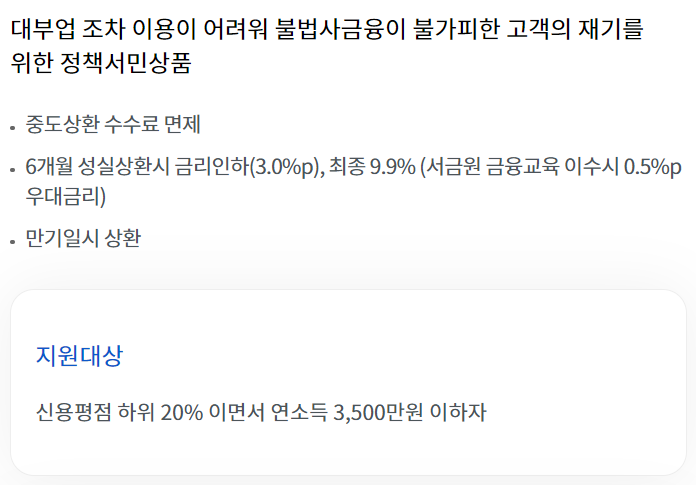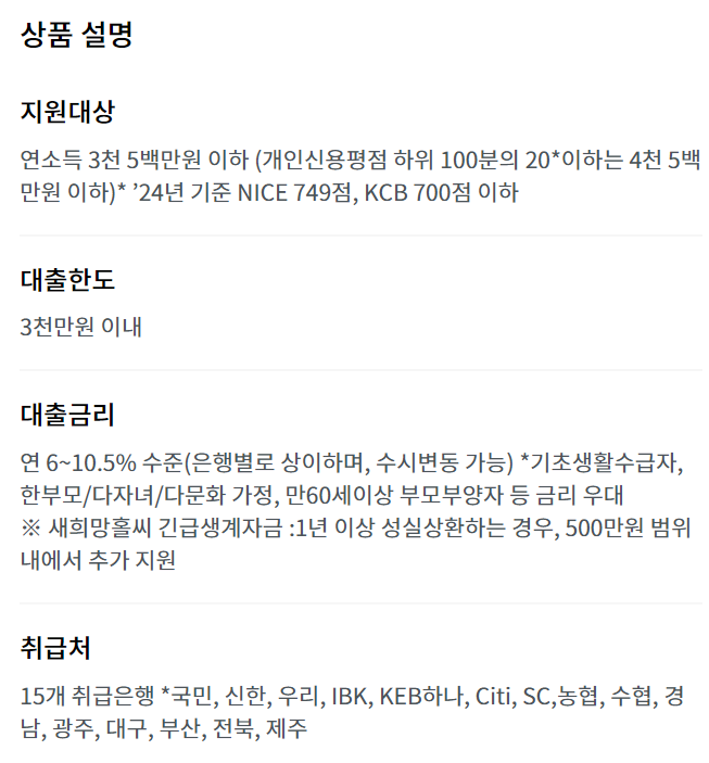해당 페이지의 대출상품 정보는 서민금융 진흥원 에서 작성한 저작물을 이용하였으며, 관련 내용은 https://www.hf.go.kr 주소에서 확인할 수 있습니다.